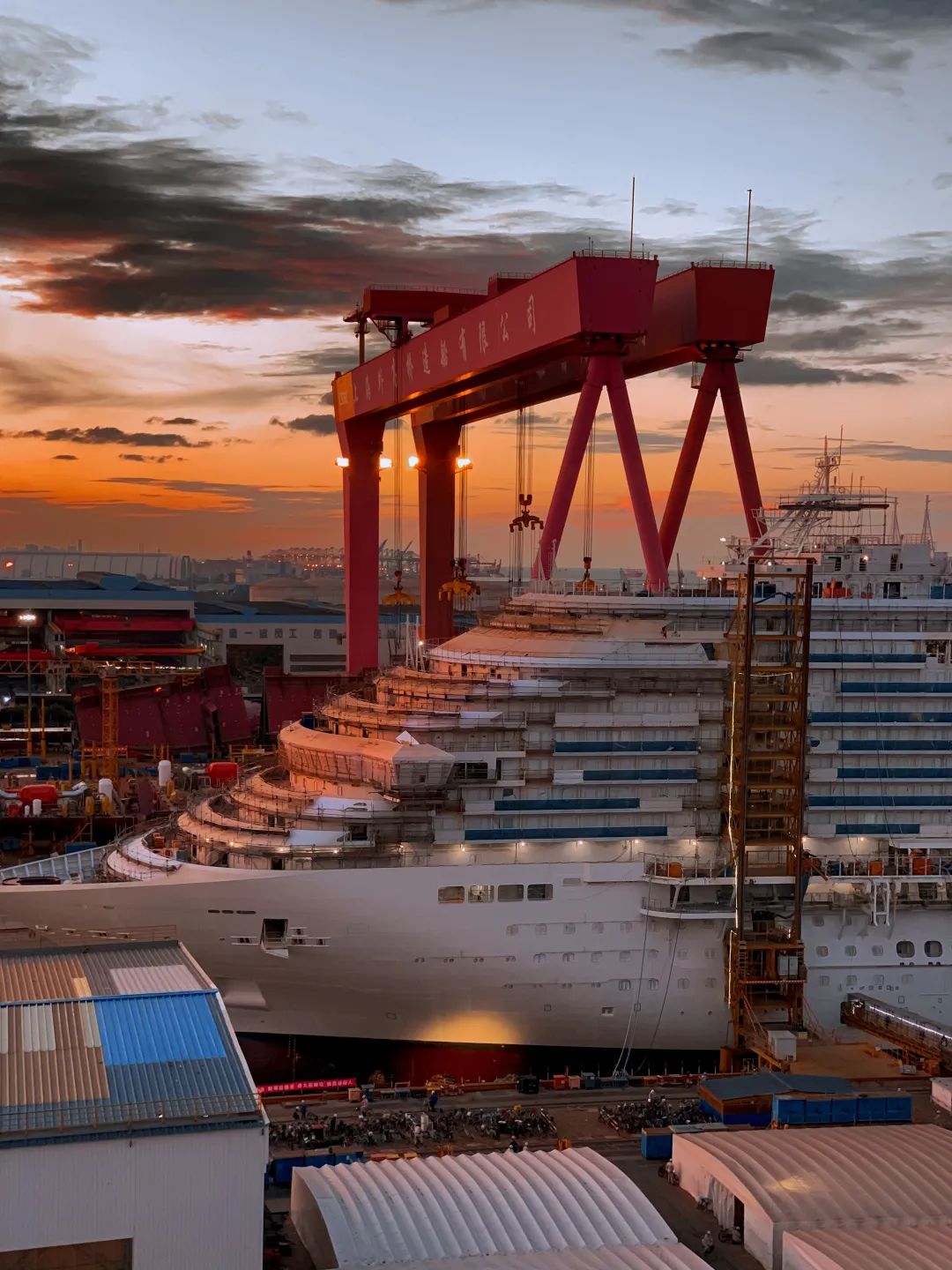 全力推進(jìn)大型郵輪設(shè)計(jì)建造是中國船舶集團(tuán)貫徹習(xí)近平總書記關(guān)于發(fā)展郵輪產(chǎn)業(yè)是利國利民重要指示精神、落實(shí)國家戰(zhàn)略、滿足人民美好生活需要的重大舉措,也是中國船舶工業(yè)轉(zhuǎn)型升級、提升中國制造在全球影響力的標(biāo)志性工程,能帶動(dòng)中國郵輪全產(chǎn)業(yè)鏈快速崛起。同時(shí),對我國建設(shè)海洋強(qiáng)國、制造強(qiáng)國、科技強(qiáng)國將產(chǎn)生重大而又深遠(yuǎn)的影響,因此被列為中國船舶集團(tuán)的“一號工程”。2019年10月18日,備受世人矚目的我國首艘國產(chǎn)大型郵輪在中國船舶集團(tuán)旗下外高橋造船正式開工點(diǎn)火,全面進(jìn)入實(shí)質(zhì)性建造階段,標(biāo)志著中國船舶工業(yè)正式跨入大型郵輪建造新時(shí)代。2022年8月8日,第二艘國產(chǎn)大型郵輪開工建造,標(biāo)志著中國船舶工業(yè)已初步掌握大型郵輪設(shè)計(jì)建造關(guān)鍵核心技術(shù),在開啟“雙輪戲珠”新時(shí)代的同時(shí),向大型郵輪批量化、系列化建造邁出了具有里程碑意義的一步。