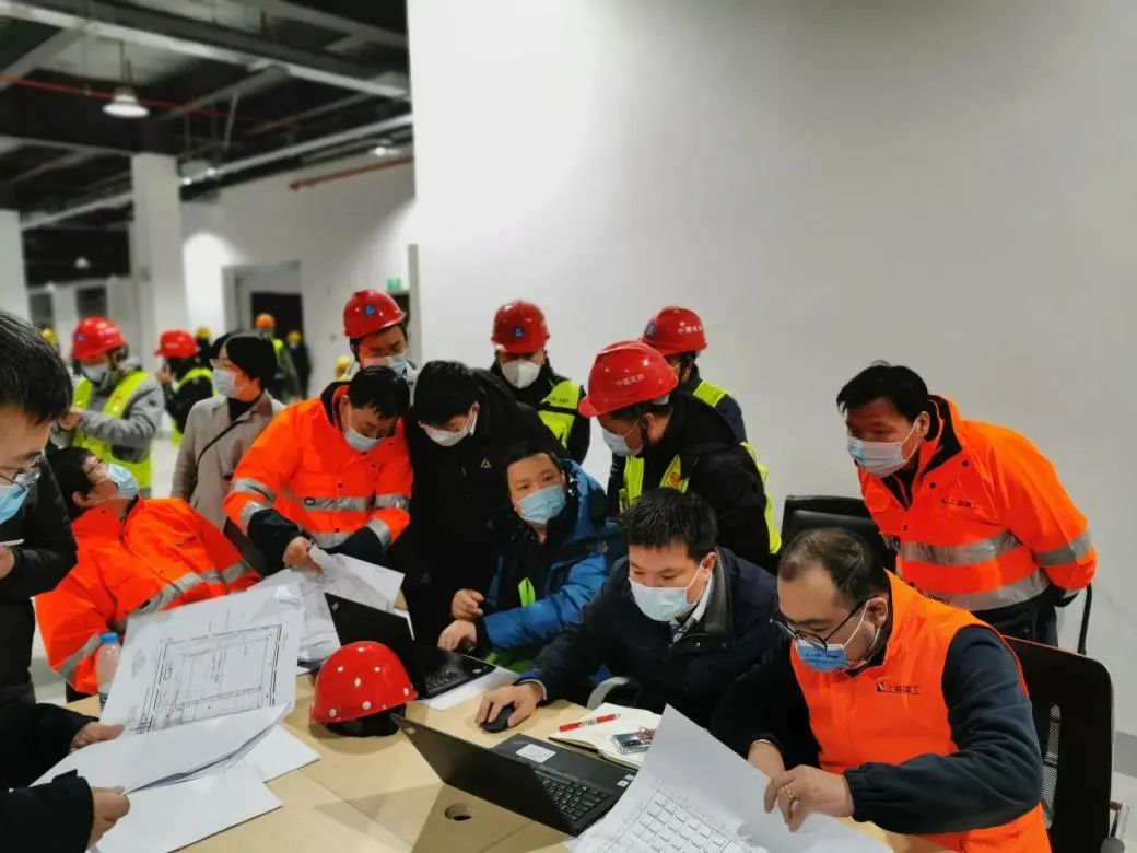 中船九院公司領(lǐng)導(dǎo)帶領(lǐng)項目團隊連續(xù)多日通宵在現(xiàn)場工作,及時協(xié)調(diào)工地各種情況,與集團公司相關(guān)部門并肩作戰(zhàn)、及時溝通,提高工作效能;同時堅持實時優(yōu)化設(shè)計,協(xié)調(diào)工程建設(shè)。項目設(shè)計負(fù)責(zé)人、中船九院副總建筑師王川第一時間組織團隊明確職責(zé)分工,確定了現(xiàn)場設(shè)計、后方設(shè)計、現(xiàn)場管理、外場支持等多專業(yè)協(xié)同配合機制,確保多條線同時作戰(zhàn)、運作高效??偣こ處燑S延驅(qū)車前往長興島專送工程保障設(shè)備,長興島實行“只進(jìn)不出”,他就直接加入現(xiàn)場設(shè)計團隊,10天沒有下島。設(shè)計團隊中三位女設(shè)計師沈清清、胡雁、沈峻,更是巾幗不讓須眉,創(chuàng)造性地解決了暖風(fēng)系統(tǒng)設(shè)計等一系列難題,堅守一線直到項目最終交付。項目管理團隊的戴鳳波、徐詠春、欒海林、王后軍、屈杰、倪冬輝等人把現(xiàn)場當(dāng)作家,3天只在賓館住了3個小時,其余時間都在車上、辦公桌上度過。項目部顧建章、汪凱則協(xié)調(diào)運輸通行資源,解決了建設(shè)期間工程人員的基本飲食問題。與此同時,還有更多的人在后方作戰(zhàn)斗支撐,中船九院建筑一院院長曾志堅迅速組織本部設(shè)計團隊,緊急將居家辦公的相關(guān)專業(yè)骨干召回,組成了包括張瓊、瞿駸、郭鳳群、李嘯、蔣斌等18名骨干在內(nèi),建筑、結(jié)構(gòu)、水、電、風(fēng)、經(jīng)濟各專業(yè)齊全的團隊。之后因項目需要,胡雁、瞿革、瞿駸上島加入現(xiàn)場設(shè)計團隊。