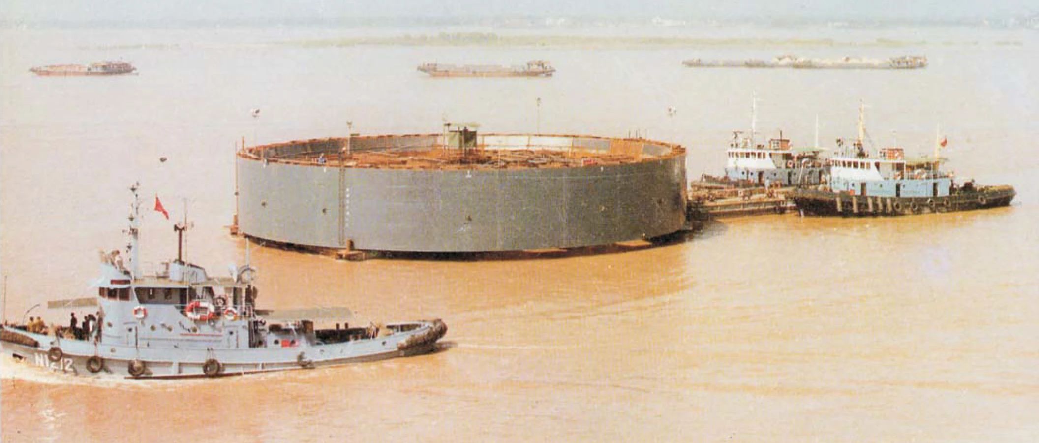 1984年廣州,黃埔文沖率先進軍國際海洋工程市場,1984年交付的“華海一號”是當時國內(nèi)建造的最大的鉆井平臺。