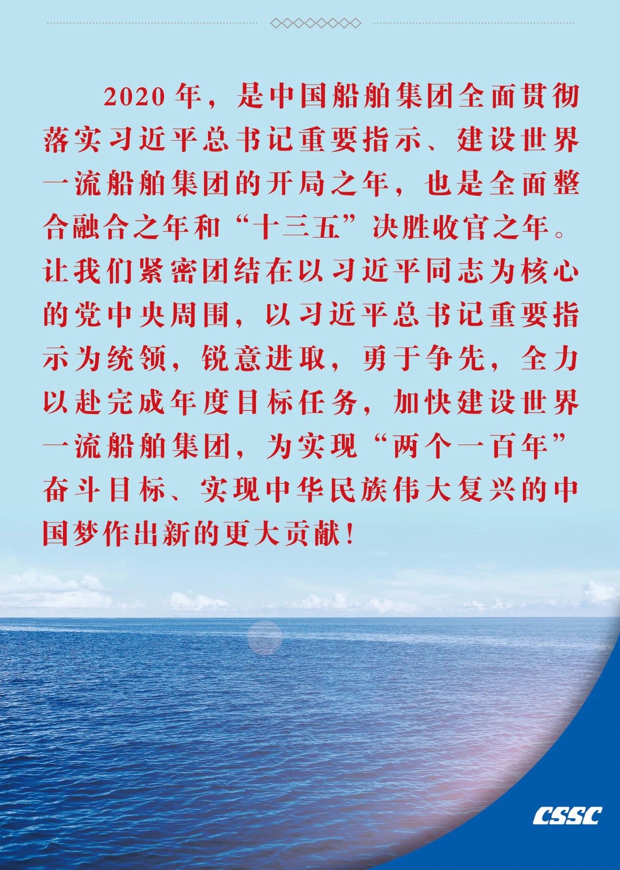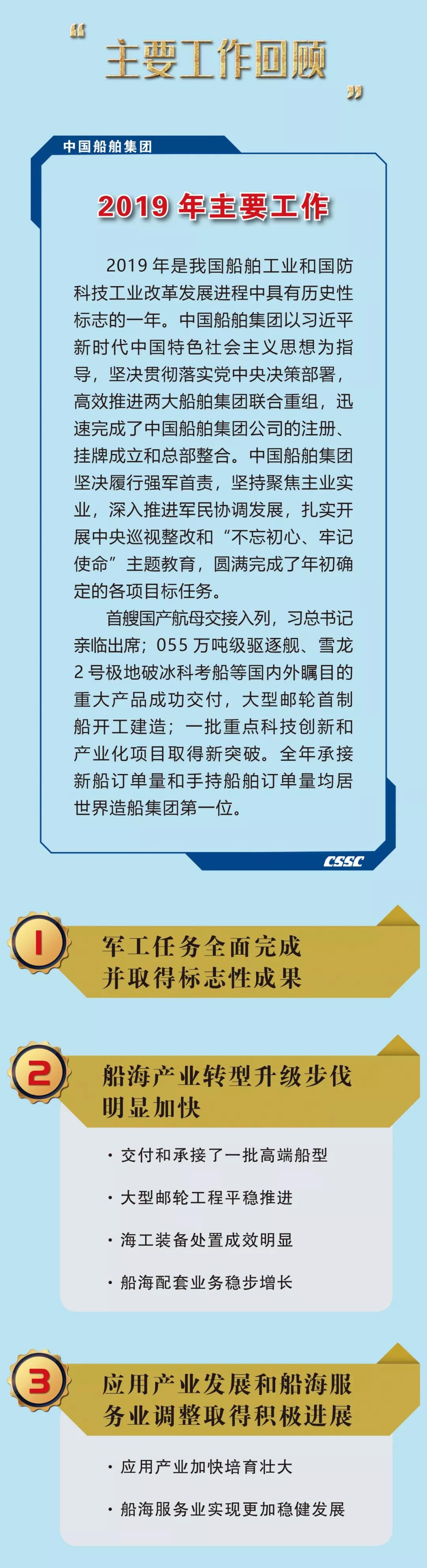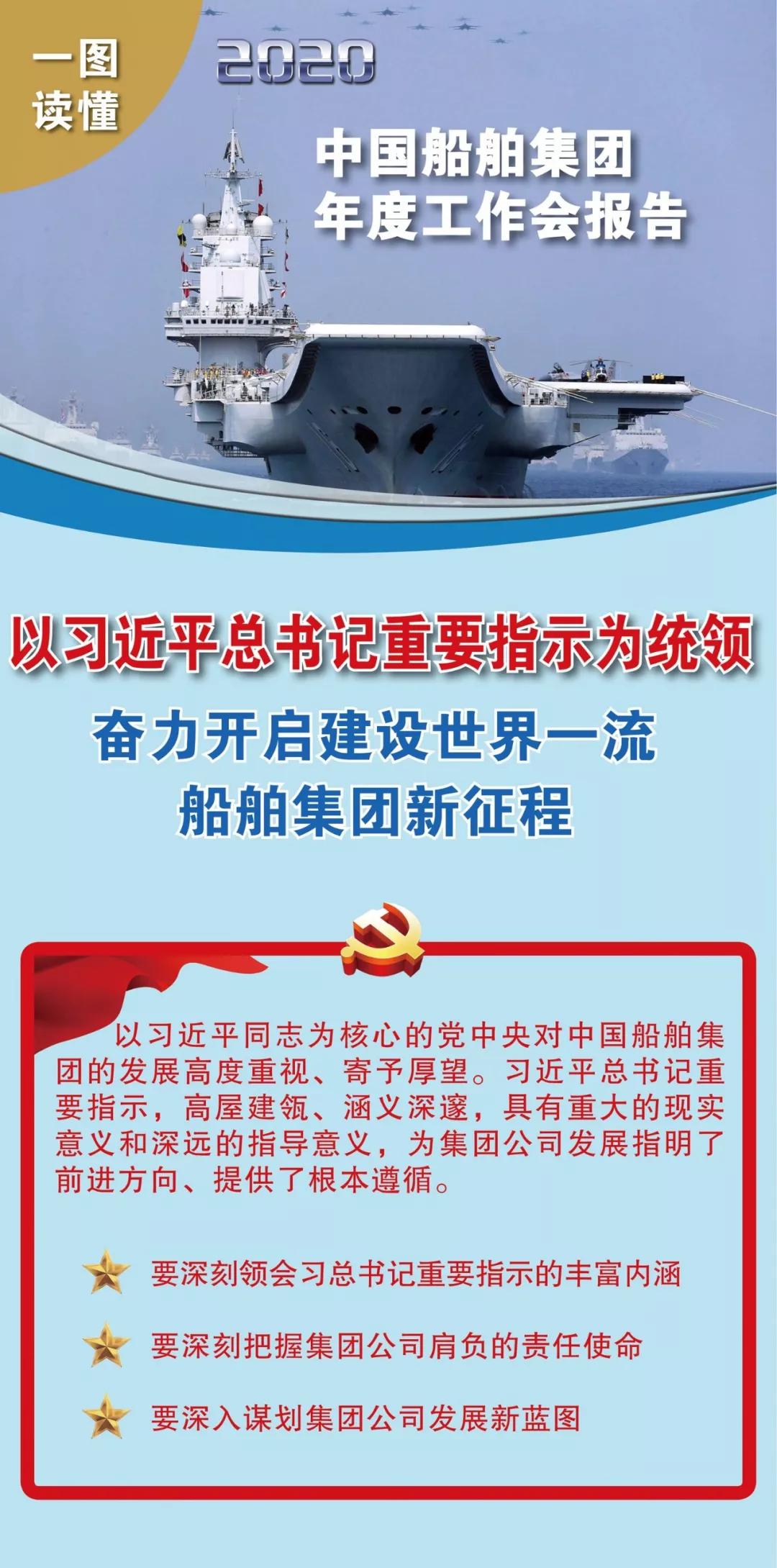 ??1月19日,在中國船舶集團(tuán)有限公司2020年度工作會(huì)議上,中國船舶集團(tuán)黨組書記、董事長(zhǎng)雷凡培作了題為《以習(xí)近平總書記重要指示為統(tǒng)領(lǐng) 奮力開啟建設(shè)世界一流船舶集團(tuán)新征程》的工作報(bào)告。