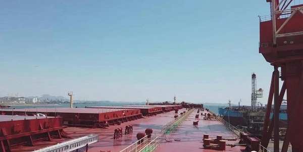 ???“鐵山”號是大船集團首次為韓國船東建造的新一代超大型礦砂船(VLOC),全船壓載系統(tǒng)管系采用玻璃鋼材質(zhì),配置有排氣硫氧化物洗滌裝置和液化天然氣燃料預(yù)留艙,環(huán)保、節(jié)能、安全、堅固,亮點突出,總體性能達到世界領(lǐng)先水平。