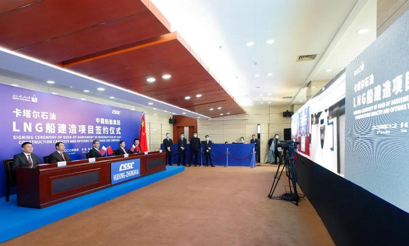 ????2019年4月22日,卡塔爾石油委托其子公司卡塔爾天然氣公司就“百艘LNG船計劃”進行招標。中國船舶集團高度重視、精心準備、積極溝通,組織旗下滬東中華聯(lián)合中國船舶工業(yè)貿易有限公司(CSTC)全力推進各項競標工作。經過一年的不懈努力和先后四輪談判,中國船舶集團最終在激烈的國際競爭中勝出,為卡塔爾石油建造下一代LNG船,彰顯了中國船舶集團在高端海洋裝備領域的強大實力。此次簽約也將為中國船舶集團完成全年目標任務奠定堅實基礎。