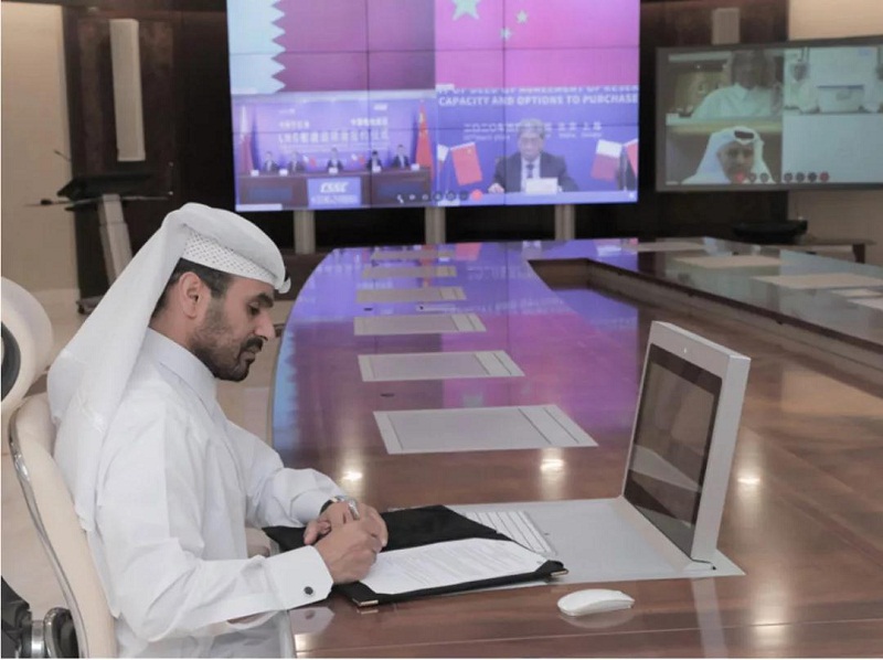 ????雖然全球疫情持續(xù)蔓延,但“一帶一路”建設的步伐并未停滯。4月22日,中國船舶集團有限公司與卡塔爾石油公司在中國北京、上海及卡塔爾多哈三地以“云簽約”方式聯(lián)合簽署“中國船舶—卡塔爾石油液化天然氣(LNG)船建造項目”協(xié)議,所涉訂單總金額超過200億元人民幣。這是卡塔爾天然氣項目首批訂單,也是中國船企迄今承接的金額最大的造船出口訂單。中國船舶集團董事長雷凡培、卡塔爾能源事務部長兼卡塔爾石油總裁薩阿德?謝里達?阿爾卡比出席簽約儀式并分別代表雙方在協(xié)議文本上簽字,中國船舶集團副總經理孫偉主持簽約儀式,卡塔爾天然氣公司首席執(zhí)行官卡利德?阿爾?塞尼、卡塔爾石油商務開發(fā)執(zhí)行副總裁賈西姆?阿爾馬拉祖齊等出席簽約儀式。
