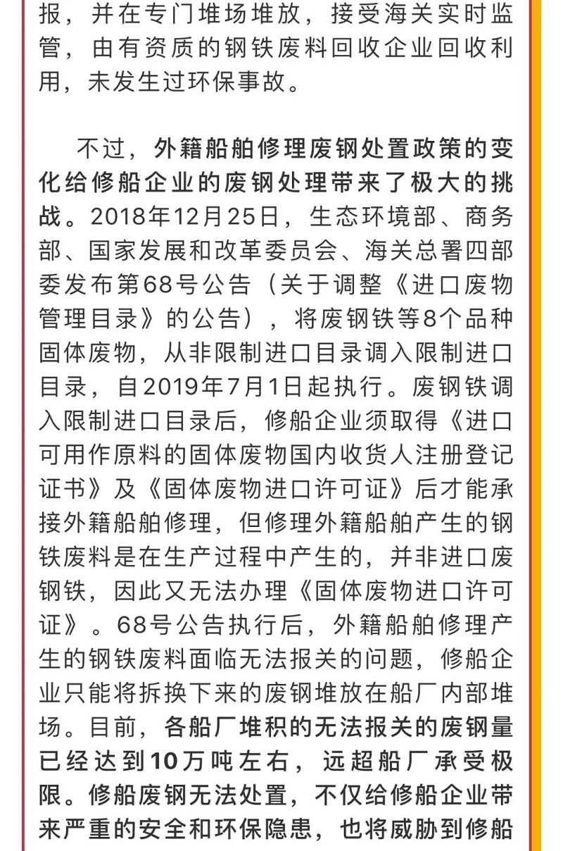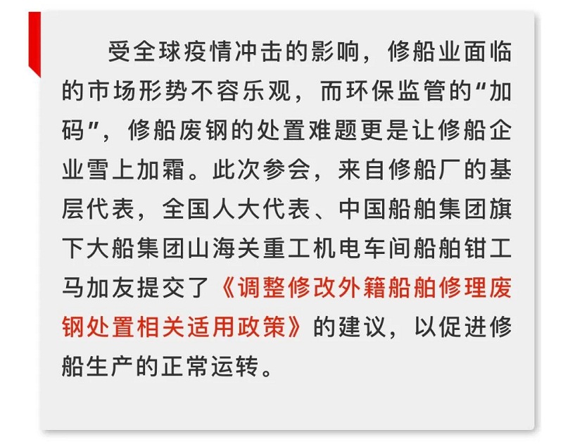 船舶看兩會|全國人大代表馬加友:修船廢鋼政策調(diào)整勢在必行!