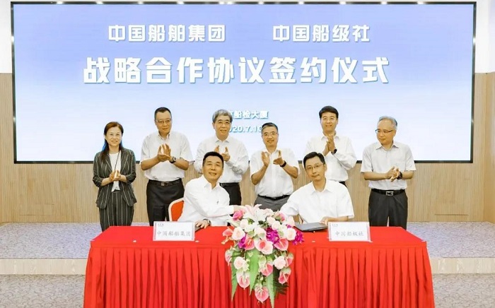 7月10日,中國船舶集團(tuán)有限公司與中國船級社在京簽訂戰(zhàn)略合作協(xié)議。中國船舶集團(tuán)黨組書記、董事長雷凡培,黨組成員、副總經(jīng)理杜剛,中國船級社總裁莫鑒輝,副總裁朱愷、范強(qiáng)出席簽約儀式。中國船舶集團(tuán)黨組成員、副總經(jīng)理孫偉,中國船級社副總裁孫峰分別代表雙方在協(xié)議上簽字。簽約后,雙方圍繞共同服務(wù)國家戰(zhàn)略,就進(jìn)一步加強(qiáng)交流合作、促進(jìn)優(yōu)勢互補(bǔ)、實現(xiàn)共贏發(fā)展進(jìn)行了深入交流。