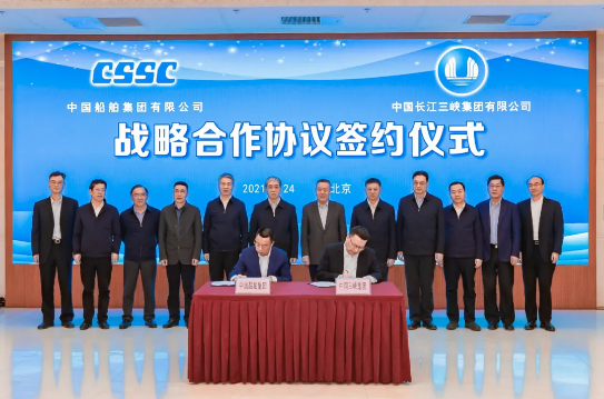 2月24日,中國船舶集團有限公司與中國長江三峽集團有限公司在京簽署戰(zhàn)略合作框架協(xié)議。中國船舶集團黨組書記、董事長雷凡培,三峽集團黨組書記、董事長雷鳴山出席簽約儀式。中國船舶集團黨組成員、副總經(jīng)理盛紀(jì)綱,三峽集團黨組成員、副總經(jīng)理王良友分別代表雙方在協(xié)議上簽字。