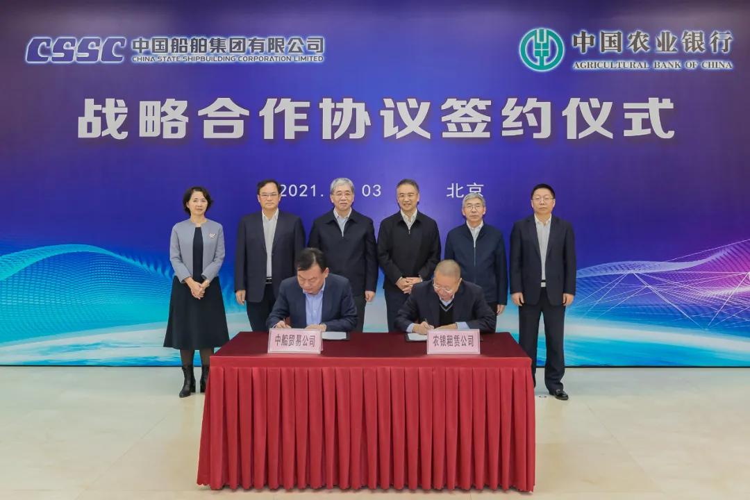 會上,在雙方領導的共同見證下,中國船舶集團旗下中船貿易與農業(yè)銀行農銀租賃簽署相關合作協(xié)議。