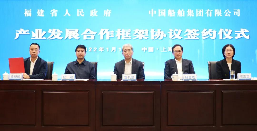1月18日,中國船舶集團(tuán)有限公司與福建省人民政府通過“云簽約”方式簽署戰(zhàn)略合作協(xié)議。中國船舶集團(tuán)黨組書記、董事長雷凡培,黨組副書記、總經(jīng)理?xiàng)罱鸪?,黨組副書記、董事杜剛,黨組成員、總會(huì)計(jì)師賈海英,黨組成員、副總經(jīng)理盛紀(jì)綱;福建省委書記尹力,省委副書記、代省長趙龍,省委常委、常務(wù)副省長郭寧寧,省委常委、秘書長吳偕林,副省長康濤出席簽約儀式。盛紀(jì)綱、郭寧寧分別代表雙方在協(xié)議上簽字。