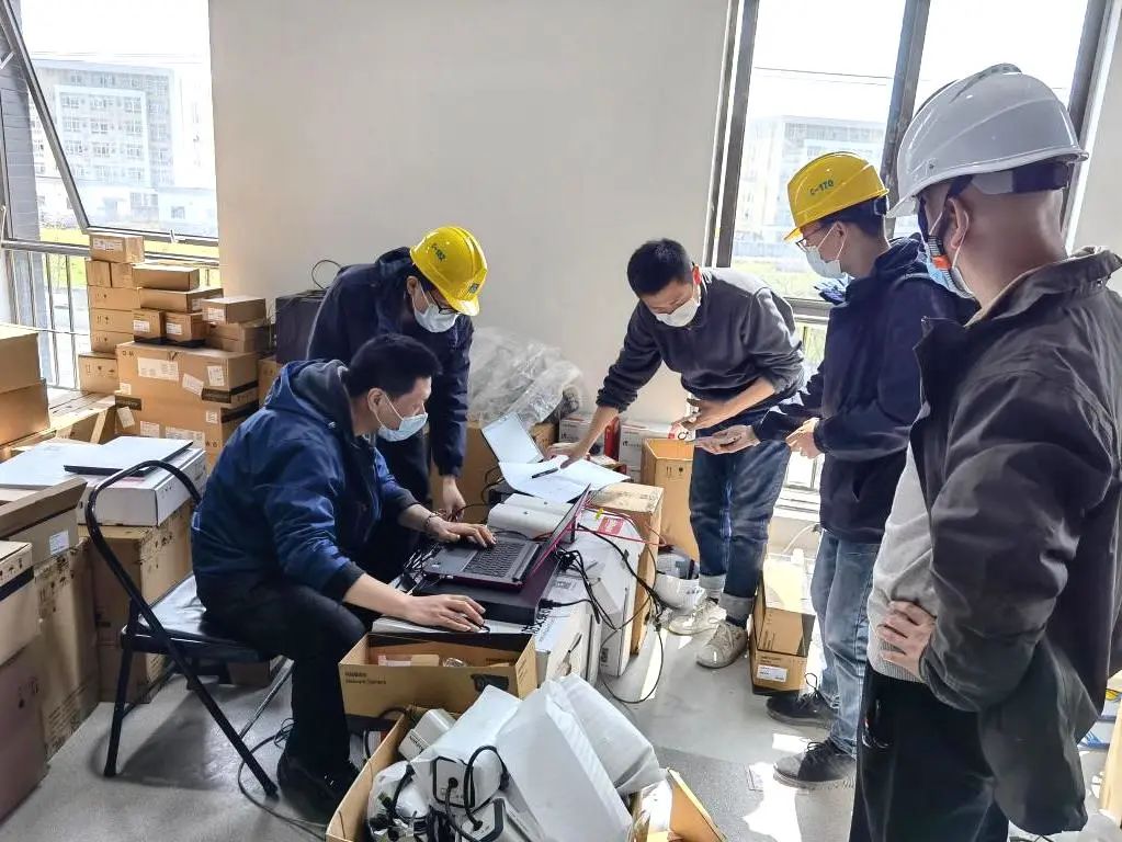工程弱電安防系統(tǒng)是一塊“硬骨頭”。七一六所自3月22日起就連夜組織進(jìn)行工程的弱電安防設(shè)計(jì),23日開工建設(shè),26日完成一號(hào)工程整體交付,30日完成三號(hào)工程弱電安防主體施工任務(wù),連續(xù)幾個(gè)通宵;搶進(jìn)度、抓質(zhì)量、保安全,反反復(fù)復(fù)地設(shè)計(jì)改圖、不停地轉(zhuǎn)換工作界面、現(xiàn)場(chǎng)驗(yàn)收過(guò)程出現(xiàn)的醫(yī)護(hù)新需求、施工現(xiàn)場(chǎng)造成的返工維修……現(xiàn)場(chǎng)團(tuán)隊(duì)分成多個(gè)工作組,細(xì)化職責(zé)分工、積極統(tǒng)籌調(diào)度,他們咬牙堅(jiān)持每天只睡一兩個(gè)小時(shí),最終高質(zhì)量完成了任務(wù)。