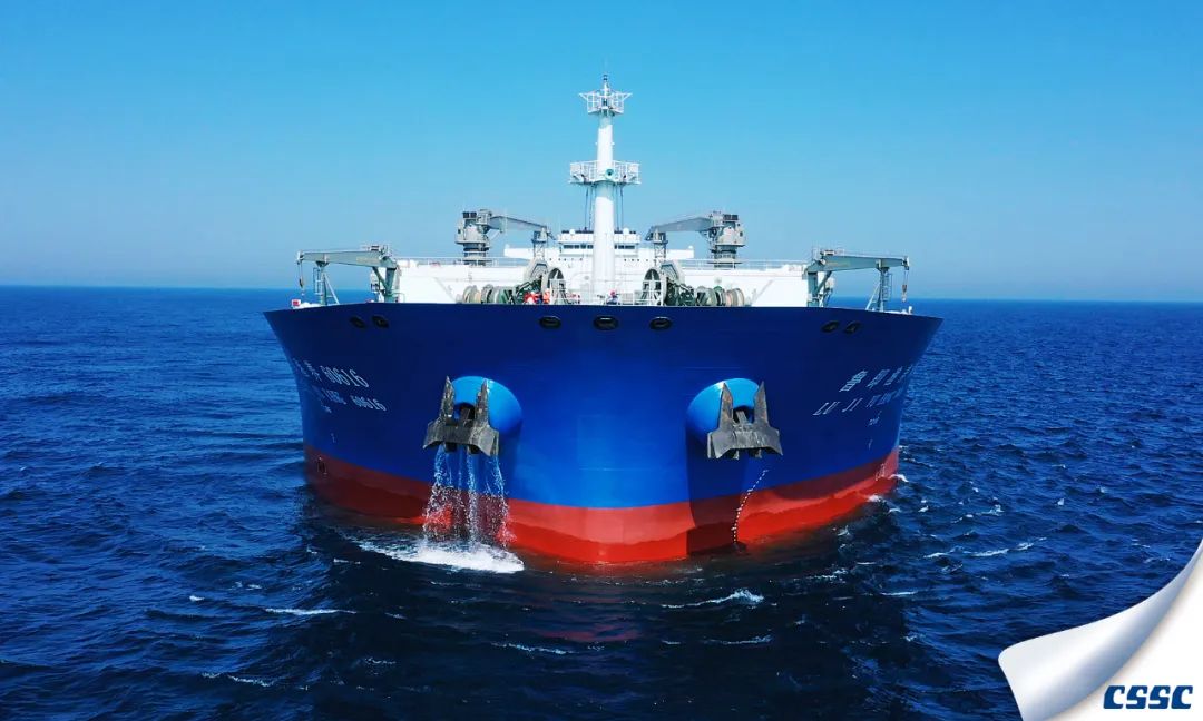 滬東中華建造的我國(guó)首艘江海聯(lián)運(yùn)型8萬(wàn)立方米LNG運(yùn)輸船“傳奇太陽(yáng)”號(hào)在長(zhǎng)興造船基地命名交付。她猶如一位亭亭玉立的舞者,在蔚藍(lán)色的綢面畫出美妙的曲線。