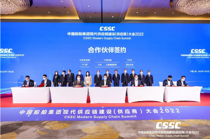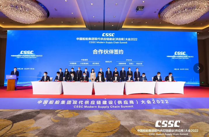11月2日,中國(guó)船舶集團(tuán)有限公司2022現(xiàn)代供應(yīng)鏈建設(shè)(供應(yīng)商)大會(huì)在上海舉行。會(huì)議旨在貫徹落實(shí)黨的二十大精神,充分發(fā)揮中國(guó)船舶集團(tuán)作為中國(guó)船舶工業(yè)產(chǎn)業(yè)鏈鏈長(zhǎng)的主體支撐和融通帶動(dòng)作用,打造船舶工業(yè)現(xiàn)代供應(yīng)鏈高端交流平臺(tái),凝聚廣泛共識(shí),深化務(wù)實(shí)合作,服務(wù)國(guó)家戰(zhàn)略,共同致力建設(shè)和維護(hù)穩(wěn)定、安全、暢通、高效、可控的全球產(chǎn)業(yè)鏈供應(yīng)鏈體系,共同促進(jìn)產(chǎn)業(yè)的高端化、綠色化和智能化轉(zhuǎn)型,共同引領(lǐng)中國(guó)船舶工業(yè)高質(zhì)量發(fā)展,為“造船強(qiáng)國(guó)”和上?!拔宕笾行摹苯ㄔO(shè)貢獻(xiàn)中國(guó)船舶力量。