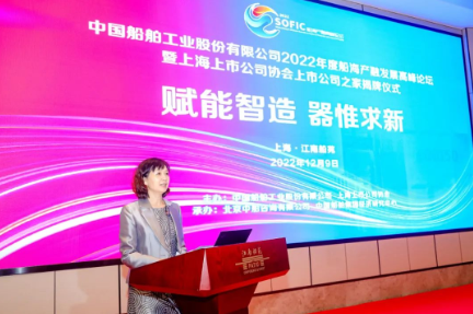 12月9日,中國船舶工業(yè)股份有限公司2022年度船海產融發(fā)展高峰論壇暨上海上市公司協(xié)會上市公司之家揭牌儀式在上海舉行。論壇旨在搭建產業(yè)與金融交流合作平臺,聚合船舶工業(yè)產業(yè)頭部資源,洞悉行業(yè)賽道一線信息,深化金融助力實體經(jīng)濟發(fā)展,推動行業(yè)創(chuàng)新驅動。中國船舶集團黨組成員、總會計師賈海英,上海上市公司協(xié)會會長、上港集團黨委書記、董事長顧金山出席論壇并致辭。中國船舶集團黨組成員、副總經(jīng)理,中國船舶股份董事長盛紀綱發(fā)表主旨演講。