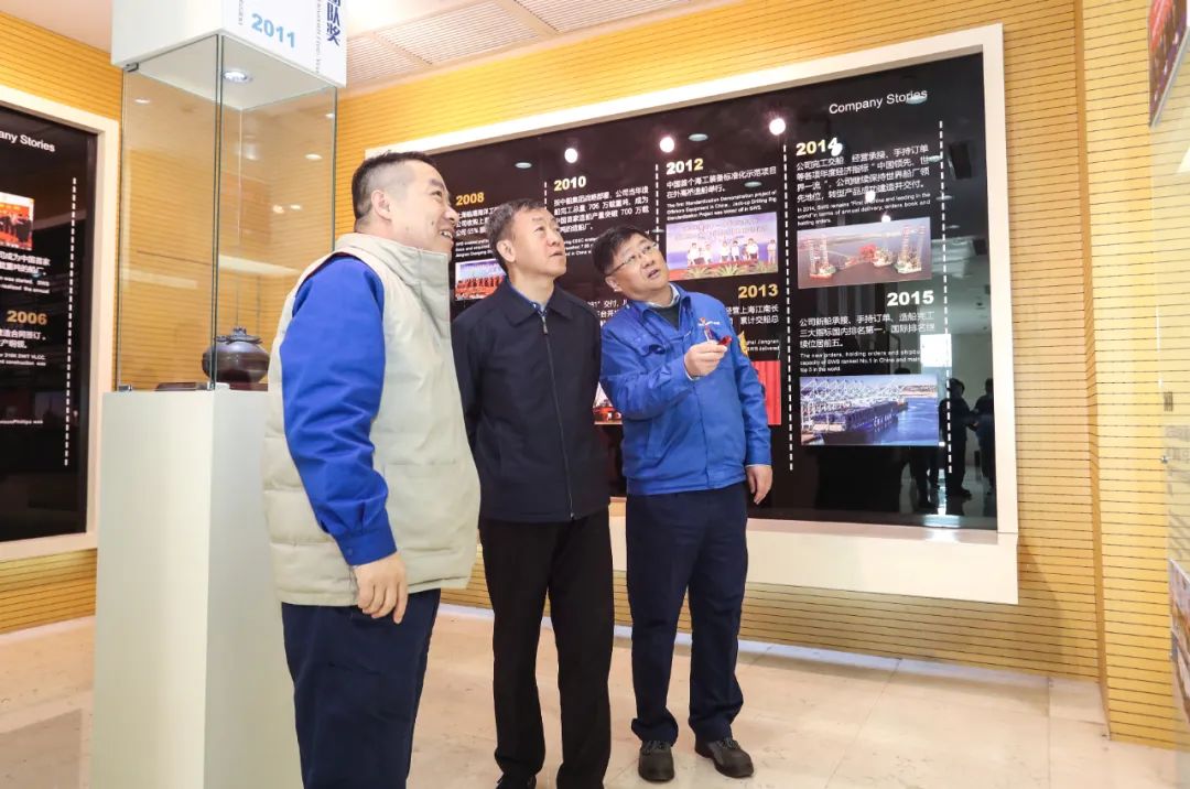在外高橋造船展廳,溫剛聽取了外高橋造船發(fā)展歷程、戰(zhàn)略定位和主建產(chǎn)品等內(nèi)容的匯報。在國產(chǎn)大型郵輪首制船建設(shè)現(xiàn)場,溫剛聽取了建造進度匯報,并安排部署下一步工作。座談會上,溫剛聽取了外高橋造船高質(zhì)量發(fā)展戰(zhàn)略、生產(chǎn)經(jīng)營情況及黨建重點特色工作的匯報。