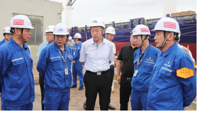 6月8日下午、9日上午,在龍穴基地調(diào)研期間,溫剛走進(jìn)造修船生產(chǎn)現(xiàn)場,登上多型重點(diǎn)在建船舶,察看車間、船塢、船臺等生產(chǎn)區(qū)域,與企業(yè)班子成員深入交流,聽取了黃埔文沖、廣船國際產(chǎn)業(yè)發(fā)展、深化改革、科技創(chuàng)新、人才隊伍建設(shè)、精益管理、黨的建設(shè)等有關(guān)情況的匯報。