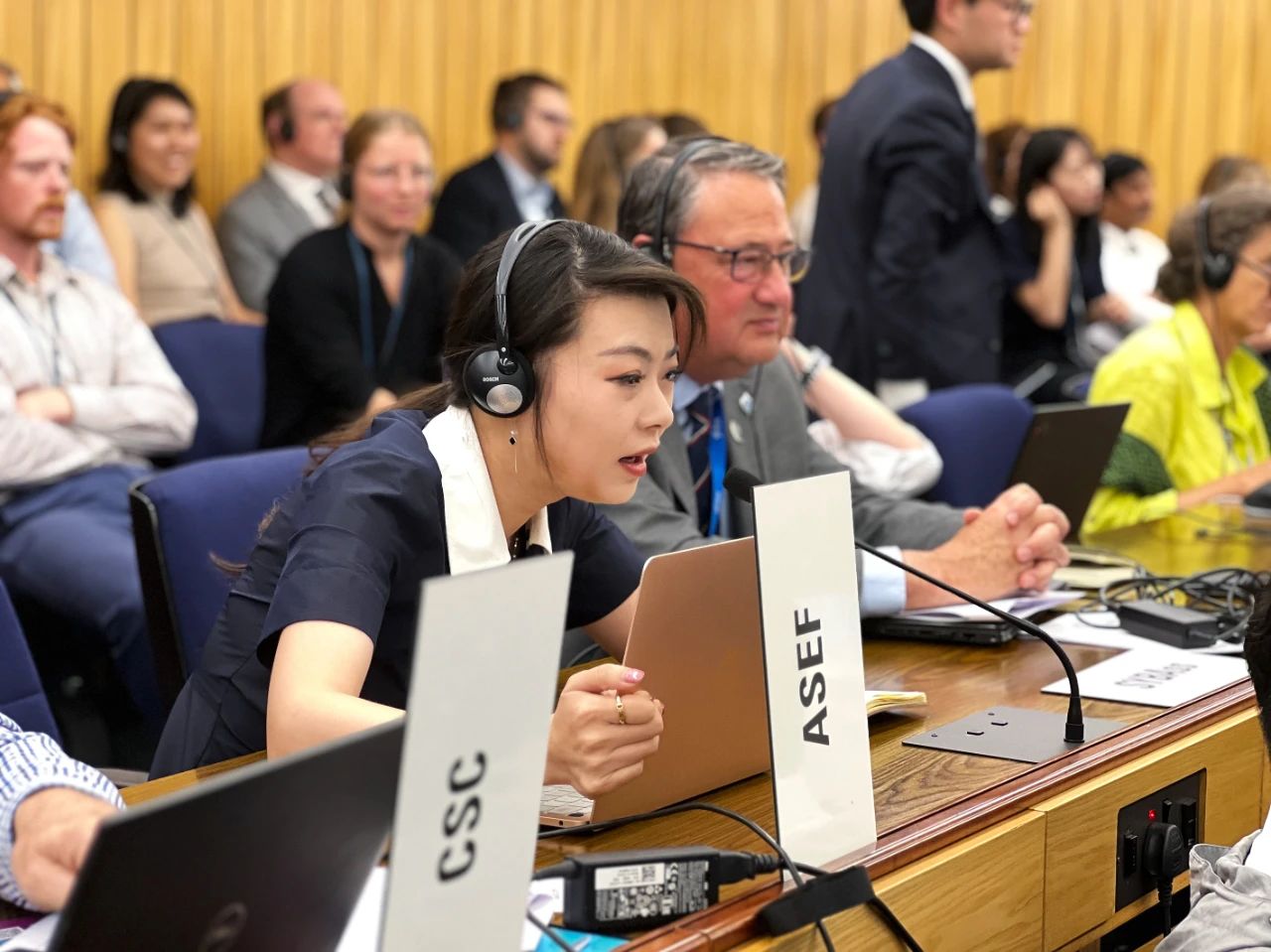 2023年7月7日,活躍造船專家聯(lián)盟(ASEF)秘書(shū)長(zhǎng)、中國(guó)船舶集團(tuán)十一所汪璇代表船舶工業(yè)界參與國(guó)際海事組織(IMO)海洋環(huán)境保護(hù)委員會(huì)第80次(MSC107)會(huì)議。會(huì)上,汪璇代表文件MEPC80/7/7的共同提出方發(fā)言,有力支撐中國(guó)代表團(tuán)在船用碳捕集技術(shù)(OCCS)的法律地位的立場(chǎng),為國(guó)際海事事務(wù)貢獻(xiàn)中國(guó)智慧,維護(hù)國(guó)家船舶工業(yè)利益。