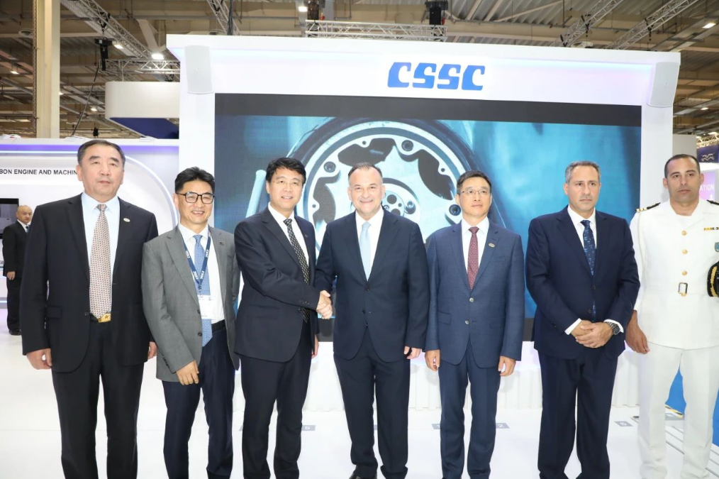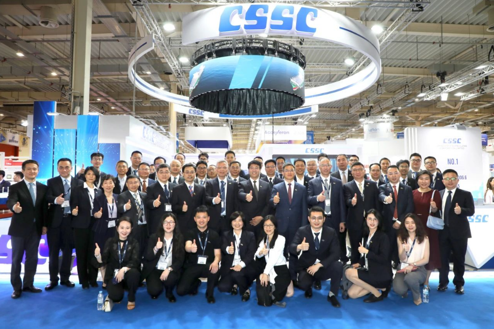 此次展會,中國船舶集團(tuán)攜旗下19家成員單位參展,有關(guān)成員單位負(fù)責(zé)人率隊赴展會開展重點船海項目經(jīng)營洽談并拜訪當(dāng)?shù)睾椭苓厙铱蛻?。集團(tuán)公司以“共贏未來”為參展主題,設(shè)置集團(tuán)總體區(qū)、綠色航運(yùn)解決方案區(qū)、低碳環(huán)保配套設(shè)備區(qū)共3個展示區(qū)域,重點展示了135500總噸大型郵輪、175000方LNG運(yùn)輸船、24000箱超大型集裝箱船、210000噸氨燃料散貨船、LNG雙燃料VLCC等一系列高技術(shù)、高附加值明星產(chǎn)品,以及CPGC-WinGD 10X92DF-M甲醇雙燃料發(fā)動機(jī)、船用碳捕捉系統(tǒng)等全球船東高度關(guān)注的綠色低碳配套設(shè)備。同時,通過展臺上醒目的品牌標(biāo)識、層級化的品牌體系圖、富有感染力的品牌推介視頻,首次面向全球客戶,立體化展示“中國船舶”品牌及下屬企業(yè)品牌和產(chǎn)品品牌體系,進(jìn)一步強(qiáng)化了集團(tuán)公司品牌形象。