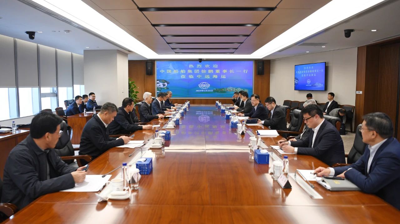 1月22日,中國(guó)船舶集團(tuán)有限公司黨組書記、董事長(zhǎng)徐鵬一行拜會(huì)中國(guó)遠(yuǎn)洋海運(yùn)集團(tuán)有限公司黨組書記、董事長(zhǎng)萬(wàn)敏。雙方圍繞深入貫徹落實(shí)黨的二十屆三中全會(huì)精神和中央經(jīng)濟(jì)工作會(huì)議精神、加快綠色和數(shù)字化轉(zhuǎn)型、攜手推動(dòng)我國(guó)航運(yùn)業(yè)和造船業(yè)高質(zhì)量發(fā)展等主題,進(jìn)行了深入交流,并達(dá)成了共識(shí)。中船集團(tuán)黨組成員、副總經(jīng)理胡賢甫,中遠(yuǎn)海運(yùn)集團(tuán)黨組成員、副總經(jīng)理、總會(huì)計(jì)師孫云飛參加會(huì)談。