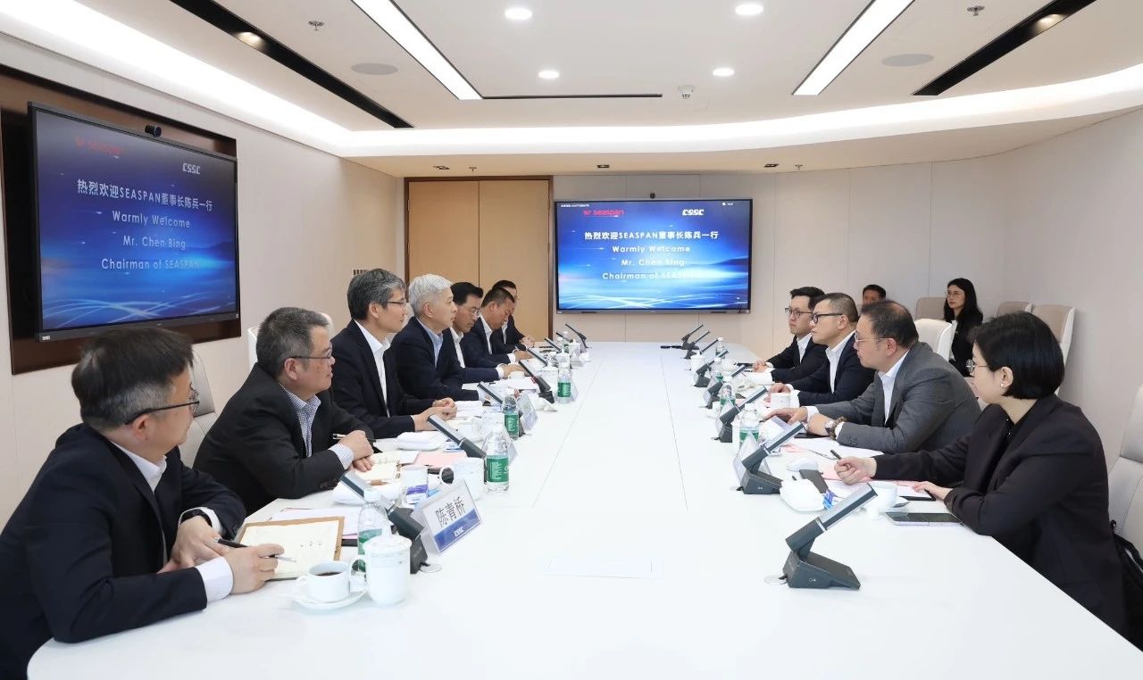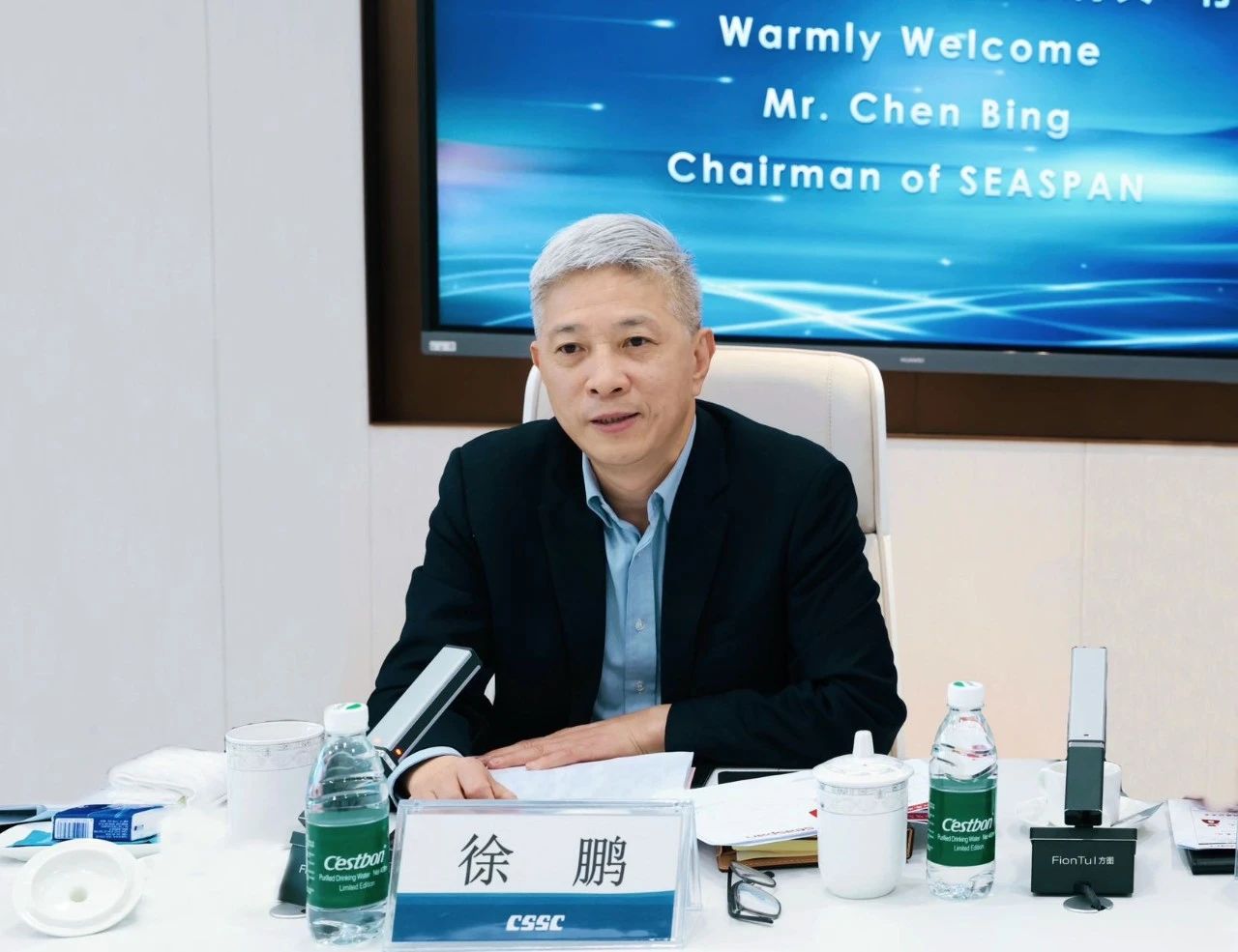 徐鵬對(duì)陳兵一行的來訪表示歡迎,并感謝Seaspan公司對(duì)中船集團(tuán)的長期信任與支持。徐鵬表示,中船集團(tuán)將持續(xù)提升自身綜合能力,努力為客戶提供更優(yōu)質(zhì)的產(chǎn)品和服務(wù)。Seaspan公司是全球最大的獨(dú)立集裝箱船租賃船東公司,與中船集團(tuán)在長期合作中結(jié)下了深厚友誼。未來,希望雙方建立常態(tài)化溝通交流機(jī)制,在船舶建造與升級(jí)改造、國際船海市場拓展、船舶全生命周期運(yùn)維、綠色能源開發(fā)等方面持續(xù)深化進(jìn)一步合作,共同為行業(yè)持續(xù)健康發(fā)展作出應(yīng)有貢獻(xiàn)。