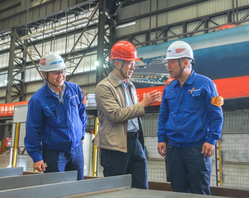 在相關(guān)二級(jí)管理單位,徐鵬調(diào)研了相關(guān)重點(diǎn)實(shí)驗(yàn)室、車間和在建的國(guó)產(chǎn)大型郵輪“愛(ài)達(dá)·花城號(hào)”,與一線職工深入交流,并聽(tīng)取了單位負(fù)責(zé)人關(guān)于經(jīng)營(yíng)生產(chǎn)、公司治理、深化改革、隊(duì)伍建設(shè)、黨的建設(shè)等方面情況匯報(bào)。