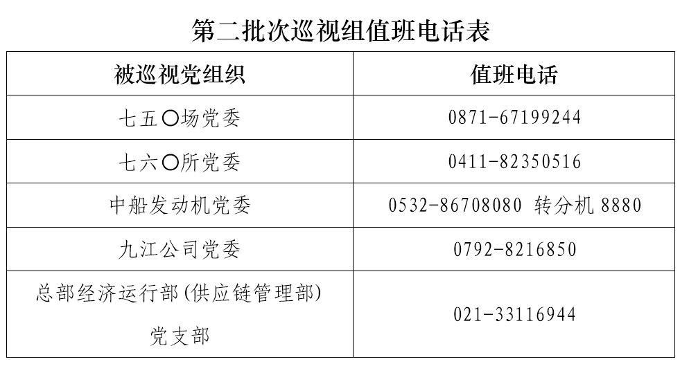 巡視期間,集團公司黨組巡視組設置值班電話和聯(lián)系信箱,主要受理反映被巡視黨組織領導班子及其成員、下一級黨組織領導班子主要負責人和重點崗位領導干部問題的來信、來電、來訪,重點關注違反政治紀律、組織紀律、廉潔紀律、群眾紀律、工作紀律、生活紀律以及巡視整改等方面問題反映。第二批次巡視受理信訪截止時間為8月18日。