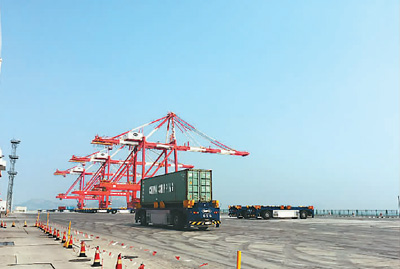 圖為AGV在洋山港四期工程試運(yùn)行。