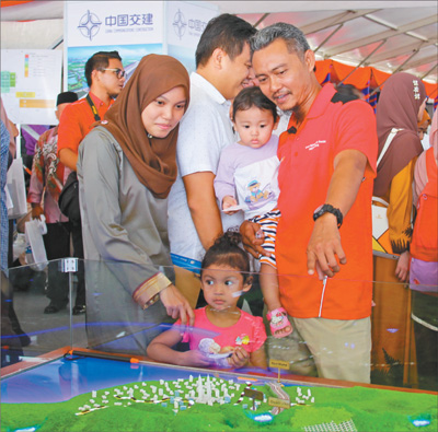聽(tīng)聞東海岸鐵路項(xiàng)目開(kāi)工的消息,9日上午,許多彭亨州當(dāng)?shù)鼐用裆碇?jié)日里的喜慶服裝,扶老攜幼趕來(lái)參加儀式,能容納5000人的現(xiàn)場(chǎng)被擠得滿滿當(dāng)當(dāng)。在開(kāi)工儀式特別設(shè)置的展示區(qū),他們?cè)阼F路信息介紹展板和模擬線路沙盤(pán)旁駐足觀看、拍照留念,喜悅之情溢于言表。