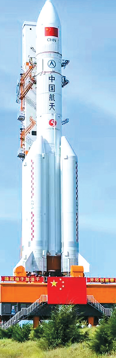 長征五號在向發(fā)射架轉(zhuǎn)運中(資料圖片) 新華社發(fā)