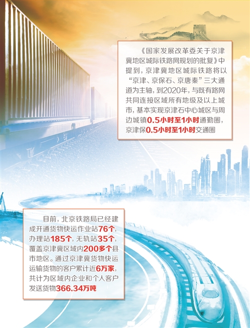 近年來,北京鐵路局先后開行了京津冀貨物快運列車、特快、快速和電商班列,打造了一批現代物流基地,提升改造了一批集裝化設施,為區(qū)域經濟發(fā)展提供了強大運力支撐和物流保障。