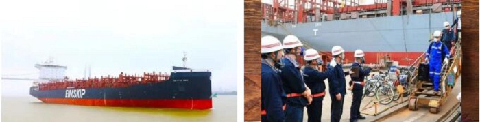 ?? H5647船是2150TEU(標(biāo)準(zhǔn)集裝箱)系列船的第三艘,總長179.4米,型寬30.95米,型深17.4米,滿載2150箱,設(shè)計吃水9米;配置了廢氣再循環(huán)(EGR)系統(tǒng)和脫硫系統(tǒng),可降低硫氮化合物的排放,滿足國際海事組織(IMO)Tier III 排放要求,是一艘綠色、環(huán)保的船舶。