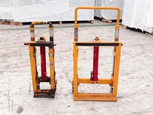 △ 左圖為運輸液壓小車,右圖為工人正在操作小車運輸。