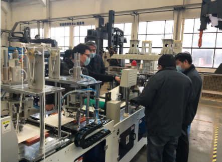 作為生產(chǎn)供貨單位,為了以最快速度擴大產(chǎn)能,八院鵬力科技集團黨支部組織成立“黨員突擊隊”,24小時無間歇輪班工作,帶頭加班加點投入專項任務研制生產(chǎn)。八院鵬力科技集團僅用11天就完成N95口罩機、平面口罩機和壓條機樣機研制,僅15天就實現(xiàn)了量產(chǎn)設備的連續(xù)供貨??蒲袌F隊正確處理抓質(zhì)量、促進度的關(guān)系,按照軍工產(chǎn)品質(zhì)量要求,確保交付產(chǎn)品質(zhì)量過硬。