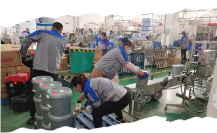 ▲熱火朝天忙生產(chǎn),第三研究室汽車防凍液生產(chǎn)車間各條生產(chǎn)線安全有序生產(chǎn),呈現(xiàn)一片繁忙景象。圖為工作人員按照操作規(guī)程有序生產(chǎn)汽車防凍液產(chǎn)品。