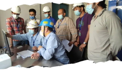 ▲用專業(yè)贏得信賴,海外某項(xiàng)目現(xiàn)場(chǎng),制氫設(shè)備工程部員工加班加點(diǎn)開(kāi)展設(shè)備調(diào)試,指導(dǎo)工作人員熟悉設(shè)備操作。圖為技術(shù)人員現(xiàn)場(chǎng)開(kāi)展技術(shù)講解培訓(xùn)。