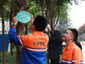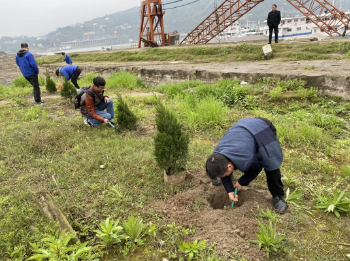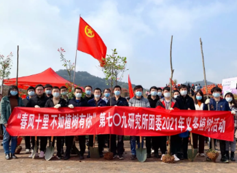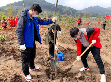 大家揮鍬鏟土、扶植樹苗、培土踩實(shí)