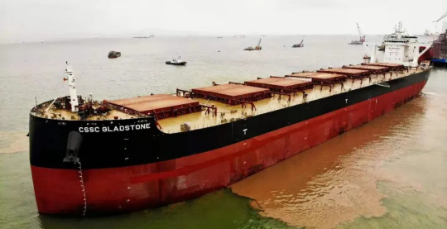 3月29日,中國船舶集團(tuán)旗下上海船院負(fù)責(zé)詳細(xì)設(shè)計(jì)、黃埔文沖建造的第4艘12萬噸散貨船“CSSC GLADSTONE”號(hào)交付。