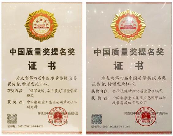 9月16日,在中國質量(杭州)大會上,第四屆中國質量獎評選結果揭曉,中國船舶集團旗下七〇二所、中船應急分別以“謀深致遠,奮斗最美”質量管理模式、全價值鏈精細化質量管理模式,榮獲第四屆中國質量獎提名獎。