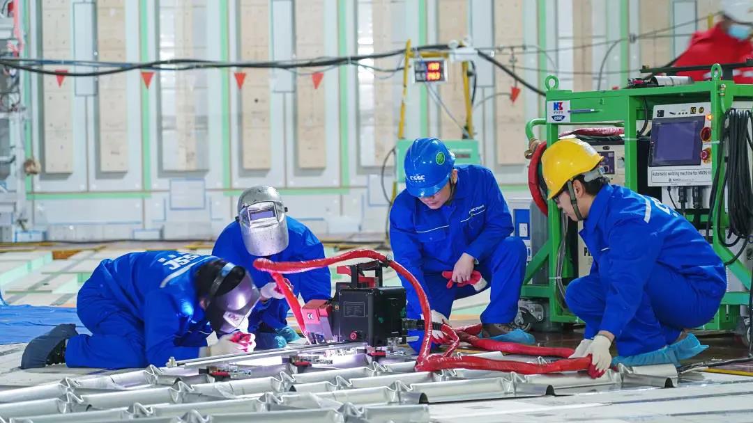 滬東中華是國際LNG儲運(yùn)裝備制造領(lǐng)先企業(yè),是唯一能夠同時建造No.96、MARK Ⅲ兩型LNG薄膜艙的船企。在中國船舶集團(tuán)高質(zhì)量發(fā)展戰(zhàn)略引領(lǐng)下,滬東中華不斷加強(qiáng)開拓LNG全產(chǎn)業(yè)鏈,其中也包括將Mark Ⅲ圍護(hù)系統(tǒng)技術(shù)由海向陸延伸。公司組織了最精干力量,應(yīng)用最先進(jìn)技術(shù)工藝,實(shí)施最嚴(yán)格工程管理,派出130多人的建造團(tuán)隊(duì),奮戰(zhàn)在項(xiàng)目現(xiàn)場,執(zhí)行一流質(zhì)量標(biāo)準(zhǔn),與各方精誠合作,通過該項(xiàng)目逐步帶動大型LNG薄膜儲罐技術(shù)在中國推向深入。