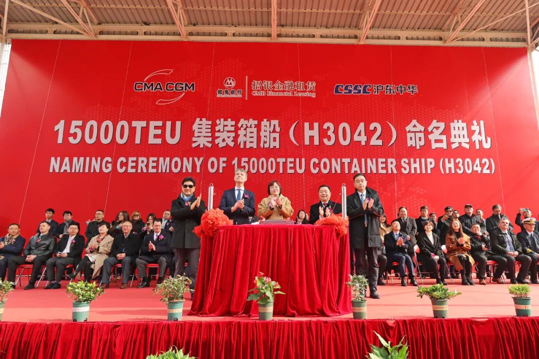 2月28日,中國船舶集團(tuán)有限公司旗下滬東中華造船(集團(tuán))有限公司聯(lián)合中國船舶工業(yè)貿(mào)易有限公司為法國達(dá)飛海運(yùn)集團(tuán)建造的15000TEU超大型集裝箱船“達(dá)飛·阿多尼斯”號在上海命名。這不僅是為達(dá)飛集團(tuán)量身定制的5艘常規(guī)動力系列箱船中的最后一艘,實(shí)現(xiàn)了平均每月命名交付一艘的既定目標(biāo),也是繼由該公司建造的5艘全球首創(chuàng)最大、最先進(jìn)23000TEU雙燃料動力集裝箱船之后,又一款被市場追捧的超大型集裝箱船項目完美收官,進(jìn)一步鞏固了其全球超大型箱船建造基地的地位。