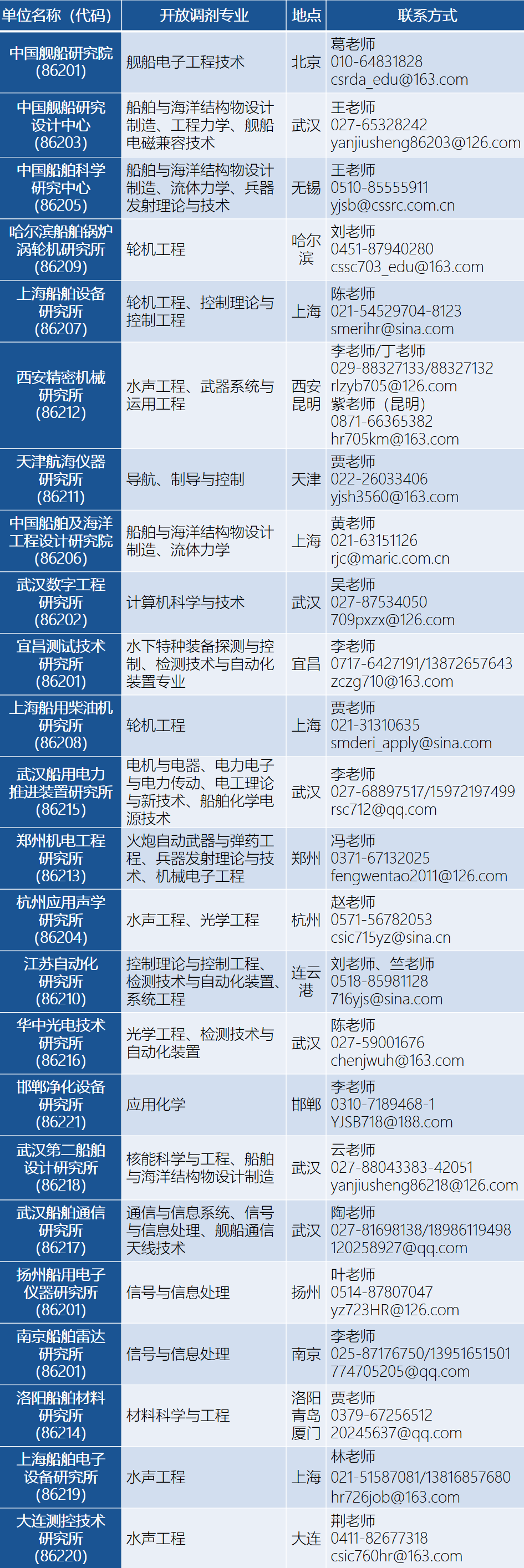 請考生將簡歷、本科成績單、初試成績單等材料打包(文件名以“姓名+初試總分+本科院校+本科專業(yè)+申請調(diào)劑培養(yǎng)單位+申請調(diào)劑專業(yè)”命名,如張三+345+哈爾濱工程大學+船舶與海洋結(jié)構(gòu)物設(shè)計制造+中國艦船研究設(shè)計中心+船舶與海洋工程)投遞調(diào)劑單位聯(lián)系人郵箱,由培養(yǎng)單位對滿足調(diào)劑條件考生擇優(yōu)篩選后,通知考生參加復試。
