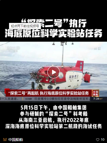 5月15日下午,我國“探索二號”科考船從海南三亞啟航,執(zhí)行2022年度深海海底原位科學(xué)實驗站第二航段的海試任務(wù)。