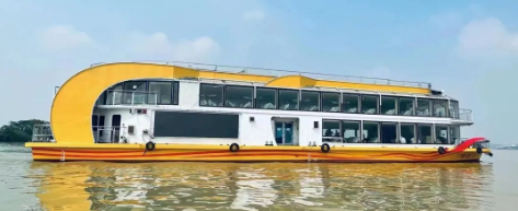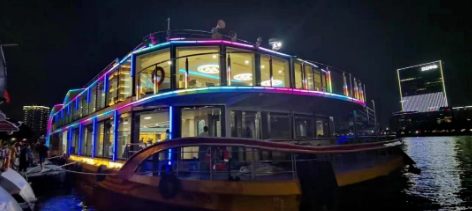 “廣游19”配置3015kWh純鋰電池驅(qū)動(dòng),Z形全回轉(zhuǎn)舵槳推進(jìn),經(jīng)濟(jì)航速下可滿足7小時(shí)續(xù)航要求。船體上建采用大面積玻璃幕墻,具有開闊的觀光視野,可360度觀賞珠江日景夜景,可提供江景游覽、娛樂餐飲、會議招待、婚禮、音樂舞會、年會等綜合服務(wù)。
