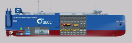 3600車汽車運輸船是江南造船建造采用浮船塢下水的全球第一批“LNG雙燃料+電池混合動力+智慧能源管理系統(tǒng)”的汽車運輸船。該型船涵蓋如雙燃料+電池混合動力及EMS能源管控系統(tǒng)等世界一流的所有滾裝船技術和系統(tǒng)。