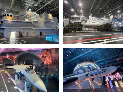 以先進武器裝備為原型,館內(nèi)建有全比例、高比例航母艦島、核潛艇、奮斗者號載人深潛器、殲20飛機、運20飛機、天宮空間站、星火號宇宙飛船、99A坦克等,集成聲光電、虛擬現(xiàn)實、動感平臺等對標(biāo)國際一線主題樂園的體驗技術(shù),采用多種體驗形式和手段,編制精彩成長歷險故事,以主題游樂、研學(xué)教育、科普展示、文創(chuàng)商業(yè)等多種業(yè)態(tài),為游客帶來一場高科技、新技術(shù)的軍事主題沉浸體驗。
