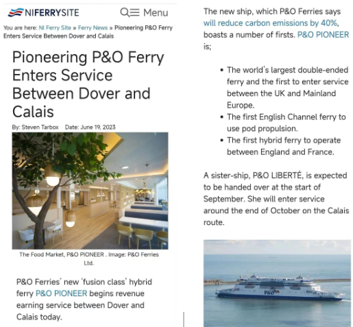 每艘“P&O Pioneer”這樣的“融合級(jí)”渡輪每年可以運(yùn)載50萬(wàn)個(gè)貨運(yùn)單位,2艘船投運(yùn)后,可以通過(guò)更少的航程來(lái)運(yùn)輸同等數(shù)量的貨物,從而大幅提高運(yùn)載效率。