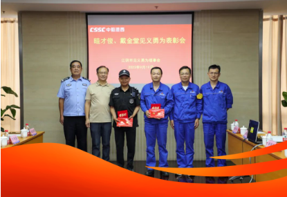 9月19日,江陰市見(jiàn)義勇為基金會(huì)專程來(lái)到中國(guó)船舶集團(tuán)旗下中船澄西,對(duì)生產(chǎn)管理部眭才俊進(jìn)行表彰。