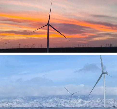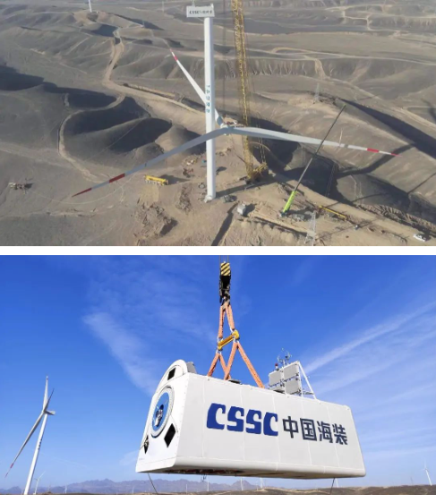 該一體化項(xiàng)目位于全國有名的“百里風(fēng)區(qū)”——新疆哈密市伊州區(qū)十三間房區(qū)域,項(xiàng)目占地面積約231平方公里,是目前哈密市單體裝機(jī)規(guī)模最大的風(fēng)儲(chǔ)一體化項(xiàng)目。共安裝150臺(tái)中船海裝H176-6.7兆瓦風(fēng)電機(jī)組和中船風(fēng)帆生產(chǎn)的30萬千瓦/120萬千瓦時(shí)的電化學(xué)儲(chǔ)能裝置。