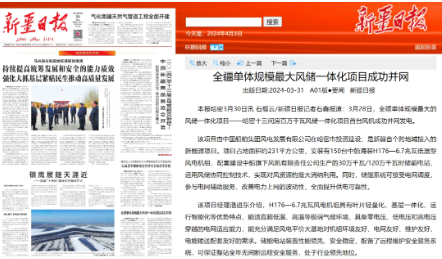 近日,中國船舶集團(tuán)旗下中船科技子公司中船風(fēng)電和哈密國投聯(lián)合開發(fā)的新疆哈密百萬千瓦風(fēng)儲一體化項(xiàng)目首臺風(fēng)機(jī)成功并網(wǎng)發(fā)電,央視《新聞聯(lián)播》、新華網(wǎng)和《新疆日報(bào)》等紛紛關(guān)注報(bào)道。