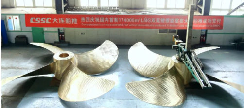 大連公司下屬大連船推成功交付自主開發(fā)設(shè)計制造的17.4萬立方米LNG運(yùn)輸船雙尾鰭螺旋槳。