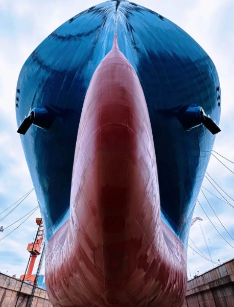 # 通過采用新型雙艉鰭線型,配備空氣潤滑系統(tǒng),進(jìn)一步提升了水動力性能,增強了推進(jìn)系統(tǒng)安全冗余;