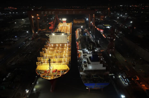 本次出塢的整船是江南造船為新加坡太平船務(wù)建造的14000TEU LNG雙燃料集裝箱船系列船第二艘;起浮的一艘整船是17.5萬(wàn)立方米大型LNG運(yùn)輸船系列船第二艘,兩艘半船分別是為新加坡太平船務(wù)建造的14000TEU LNG雙燃料集裝箱船系列船第三艘的艏、艉半船和第四艘的燃料艙環(huán)段。
